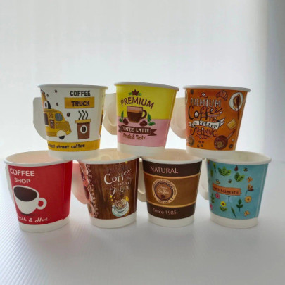 แก้วกาแฟ มีหู 6.5 ออนซ์ เคลือบ PE บรรจุ 50 ชิ้น / แถว