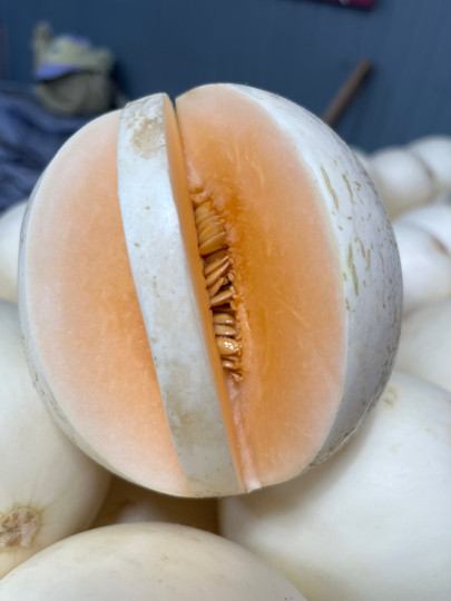 ✔ แคนตาลูปพันธ์ไข่มุกหวานฉ่ำ เบอร์2 ✔ ขนาด 5ขีด-7ขีด./ลูก ขายคละยกถุง. ละ10กิโลกรัม ✔ พันธ์ไข่มุกขนาดลูกจะไม่ใหญ่ขาวนวลสวย ✔ สีสวยหวานอร่อยค่ะ