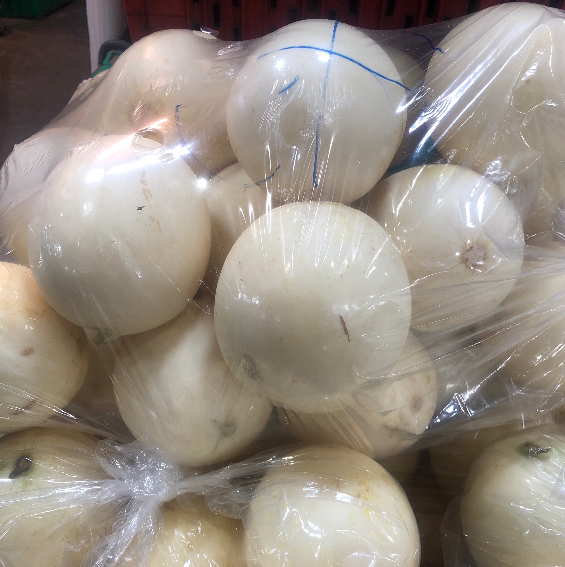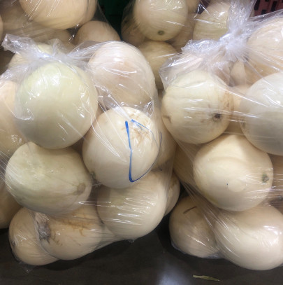 แคนตาลูปพันธุ์ไข่มุกเนื้อสวยหวานจากแดนอีสาน ประเทศไทย ลูกน้ำหนักประมาณ7 ถึง 8 ขีด เนื้อเข้มหวานเจี๊ยบผิวขาวเนียนสวยคะ