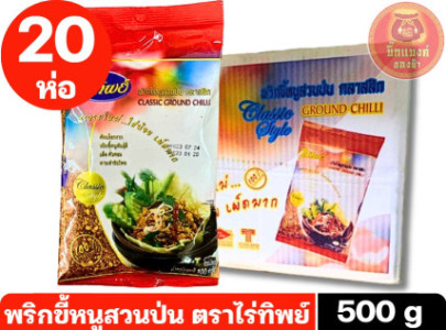 พริกขี้หนูสวนป่น (ป่นหยาบ) ตราไร่ทิพย์ 500 กรัม [1 ลัง บรรจุ 20 ถุง]
