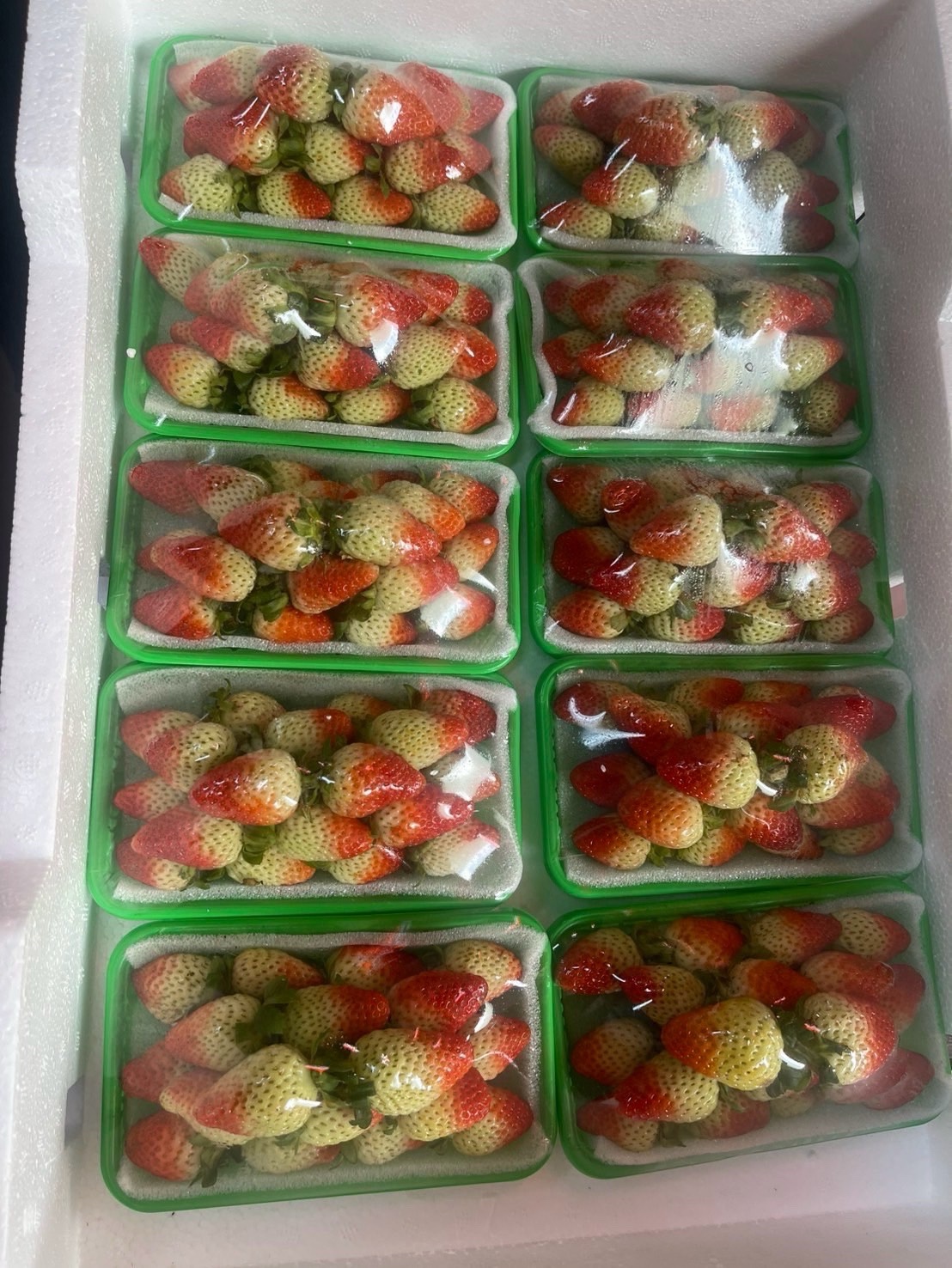 สตรอเบอร์รี่จีน ถาดละ 10 แพ็ค น้ำหนักประมาณ 2-2.50 กิโลกรัม