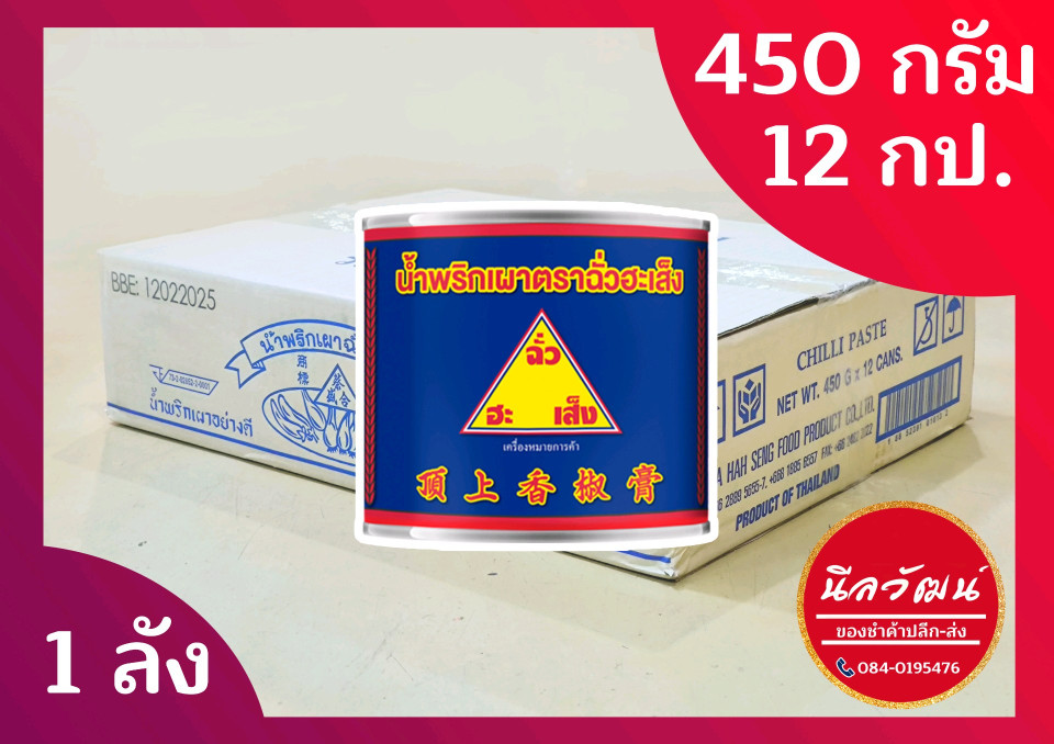 น้ำพริกเผา ตรา ฉั่วฮะเส็ง ขนาด 450 กรัม จำนวน 12 กระป๋องต่อลัง