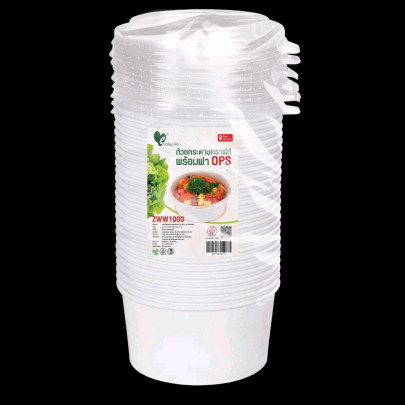 ชามกระดาษสีขาว พร้อมฝา OPS ไม่เป็นไอน้ำ ขนาด 1,000 ml ตรา EASY LIFE บรรจุ 300 ชุด / ลัง
