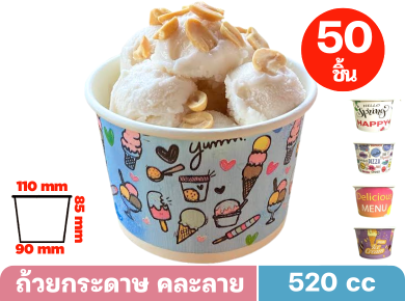 ถ้วยกระดาษ คละลาย ขนาด 520 cc. (1 แพ็ค บรรจุ 50 ชิ้น)
