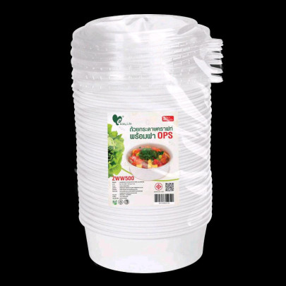 ชามกระดาษสีขาว พร้อมฝา OPS ไม่เป็นไอน้ำ ขนาด 500 ml ตรา EASY LIFE บรรจุ 25 ชุด / แพ็ค