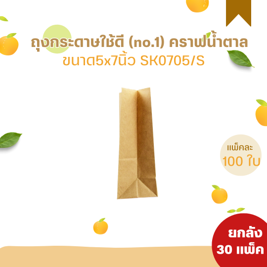 ถุงกระดาษใช้ดี (no.2) คราฟน้ำตาล ขนาด5x7นิ้ว SK0705/S (100ชิ้นx30ห่อ)(3000ชิ้น/ลัง)
