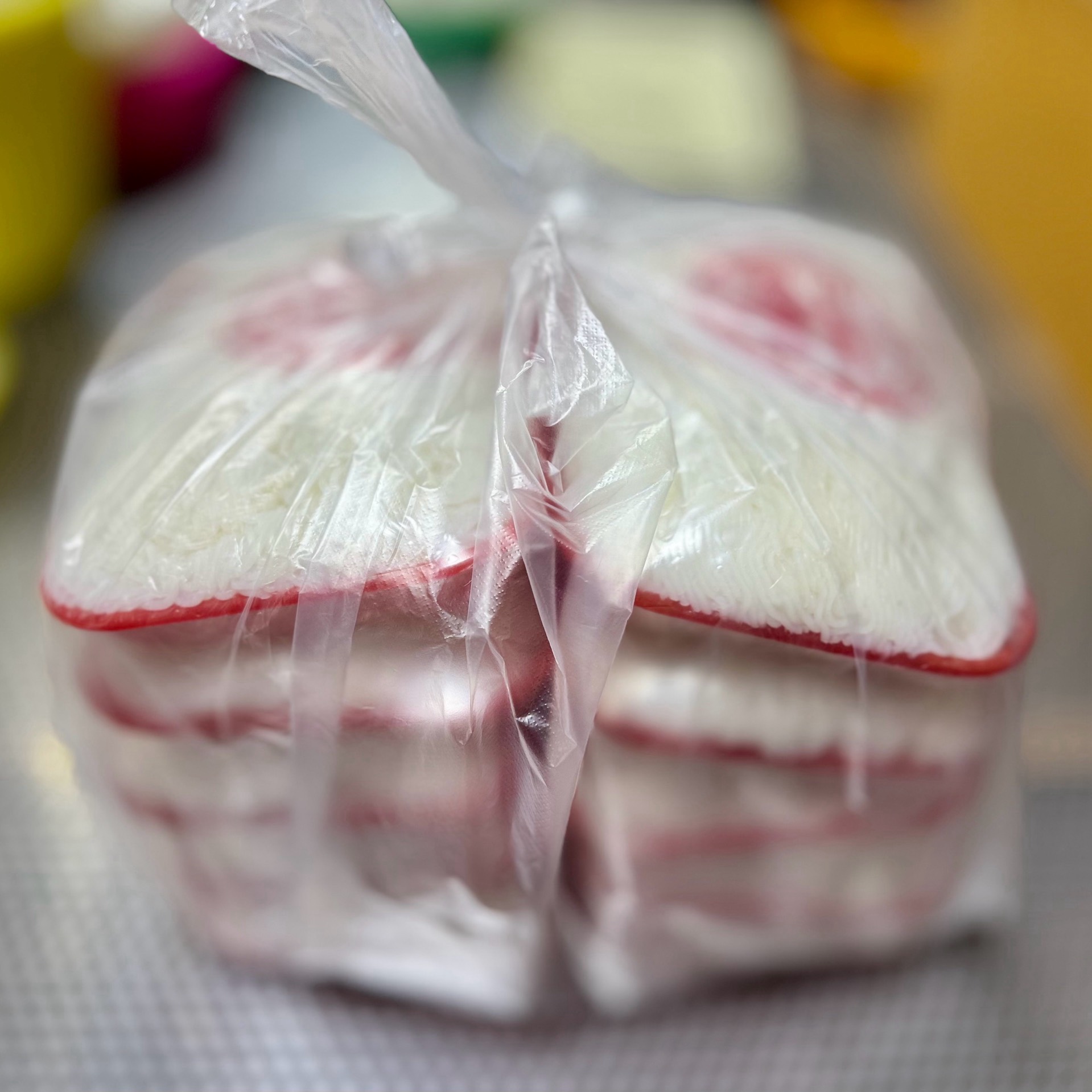 ถาดละครึ่งกิโล จำนวน 10 ถาด อายุประมาณ 3 วัน ทำใหม่วันต่อวัน