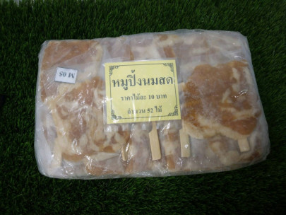หมูปิ้งนมสดกึ่งสำเร็จรูปแช่แข็ง ขนาดขายไม้ละ10บาท 1แพ็คมี52ไม้สามารถนำไปปิ้งขายได้เลยไม่ต้องปรุงเพิ่ม****ทางร้านจัดส่งแบบไม่ควบคุมอุณหภูมิ****