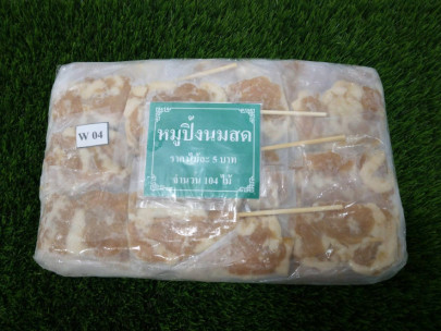 หมูปิ้งนมสดกึ่งสำเร็จรูปแช่แข็ง ขนาดขายไม้ละ5บาท 1แพ็คมี104ไม้สามารถนำไปปิ้งขายได้เลยไม่ต้องปรุงเพิ่ม****ทางร้านจัดส่งแบบไม่ควบคุมอุณหภูมิ****