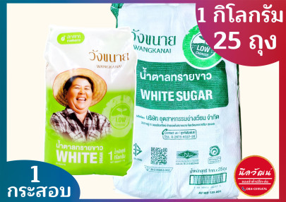 น้ำตาลทรายขาว ตรา วังขนาย ขนาด 1 กิโลกรัม จำนวน 1 กระสอบ บรรจุ 25 ถุง