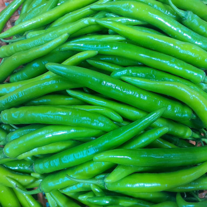 พริกชี้ฟ้าเขียวอ่อนเกรดดี สวย สด เม็ดจะค่อนข้างเล็ก เพราะเป็นพริกอ่อนสดๆ