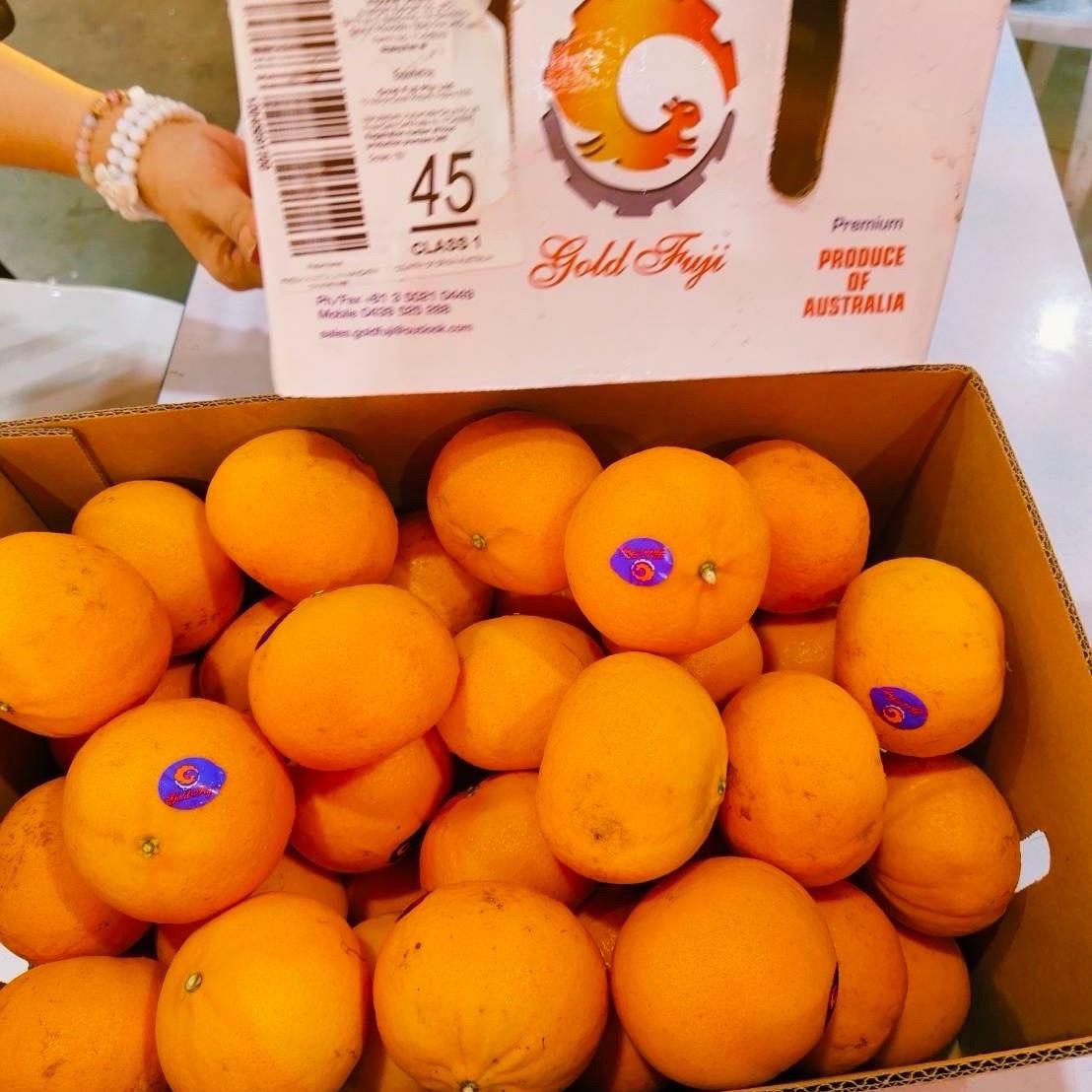 ส้มออสเตรเลียกล่องขาว size45 หวานอมเปรี้ยว ผิวสวยอาจจะมีติดลายเล็กน้อย ตามธรรมชาติของผิวส้ม