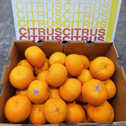 ส้มออสเตรเลียกล่องขาว size56 หวานอมเปรี้ยว ผิวสวยอาจจะมีติดลายเล็กน้อย ตามธรรมชาติของผิวส้ม