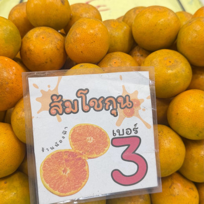 เบอร์ 3 ประมาณ 15 ลูกต่อโล หมายเหตุ ลูกติดลายบ้าง อาจมีส้มฝ่อบาง ไม่เคลมนอกจากเน่าเสีย