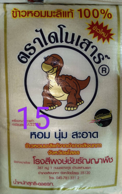 ข้าวหอมมะลิกลางปี ตราไดโนเสาร์เชือกม่วง 15กก ข้าว1 ต่อ น้ำ1.3 หรือปรับตามความเหมาะสม