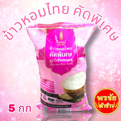 ข้าวหอมไทยคัดพิเศษ ตรา ไรซ์พลัสชมพู ถุงขนาด 5 กิโลกรัมหอมละมุนหุงง่ายได้ปริมาณเม็ดสวยได้มาตรฐานคุ้มค่า