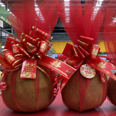 ส้มโอไหว้ ห่อผ้าแดงมงคล