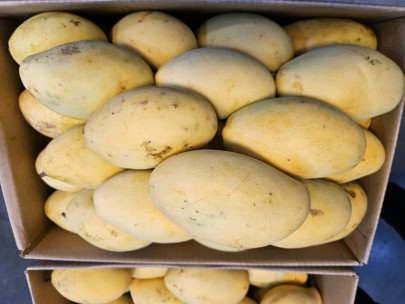 แก้วขมิ้น ห่อแบบสุกไซส์ 3 ลูกโล บ่มแล้ว 2 คืน. สุกห่ามยังไม่หวานต้องตั้งทิ้งไว้อีก 1-2วันถึงจะหวาน ใช้ทำน้ำปั่นได้ กินกับข้าวเหนียวมะม่วงได้คะ