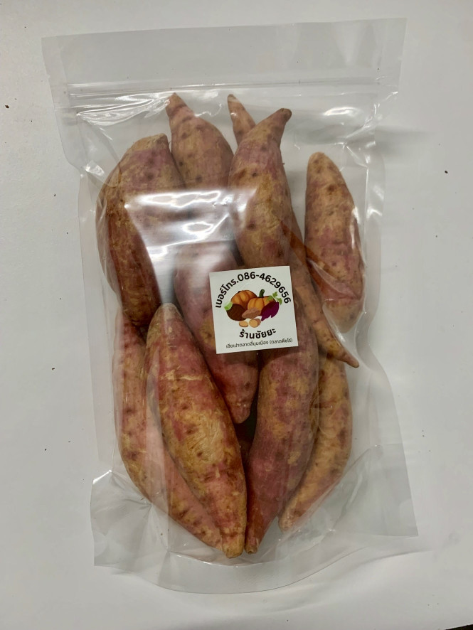ขนาด60-100 กรัม(12-13ชิ้น/กก.)รสชาติหวานมันเนื้อสัมผ้สค่อนข้างหนึบแน่นเมื่อทานตอนร้อน แต่เมื่อเย็นลงเนื้อจะร่วนคล้ายเผือก