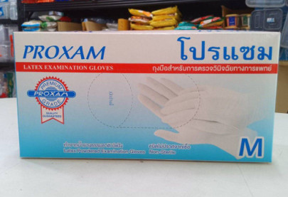 ถุงมือยาง สีขาว ไซส์ M บรรจุ 100 ชิ้น / กล่อง