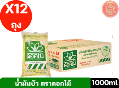 น้ำมันบัว (น้ำมันเมล็ดในปาล์ม) ปริมาณ 1 ลิตร (1 ลังบรรจุ 12 ถุง)