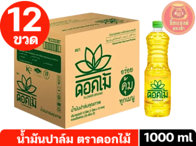 น้ำมันปาล์ม ตราดอกไม้ ขวด 1 ลิตร ยกลัง 12 ขวด