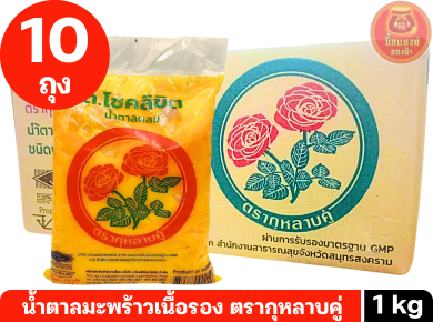 น้ำตาลปี๊ป(อย่างรอง) ตรากุหลาบคู่ 1 kg. [1 ลัง บรรจุ 10 ถุง]