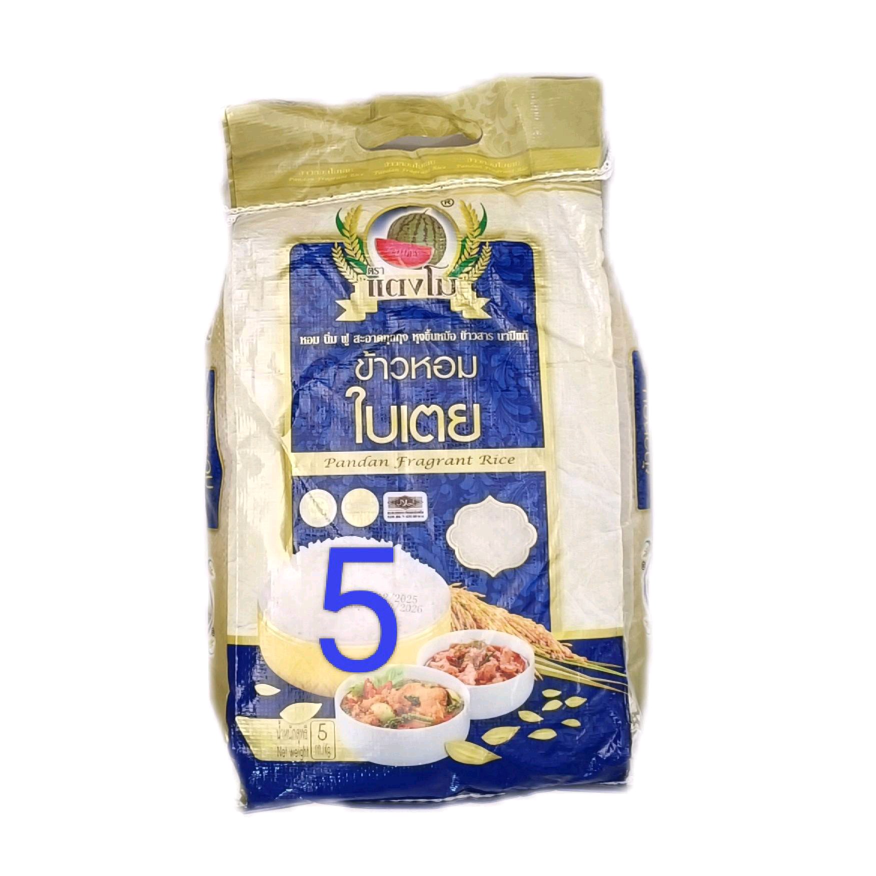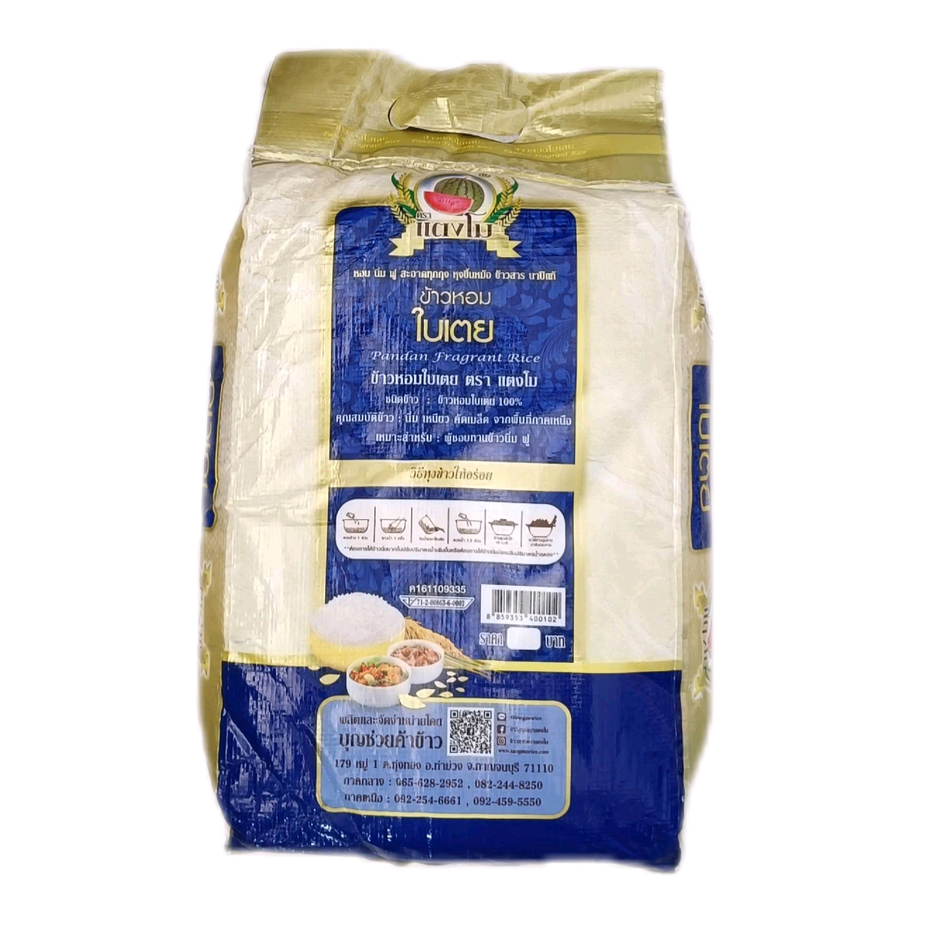 ข้าวหอมใบเตย ตราแตงโม 5กก. หอม นุ่ม ฟู สะอาด ราคาประหยัด สุดคุ้ม