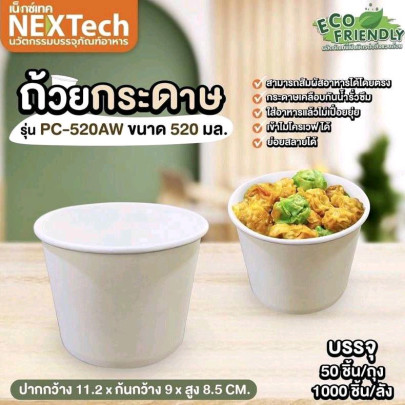 ถ้วยกระดาษ สีขาว ขนาด 520 cc. ตรา NEXTECH บรรจุ 1,000 ชิ้น / ลัง