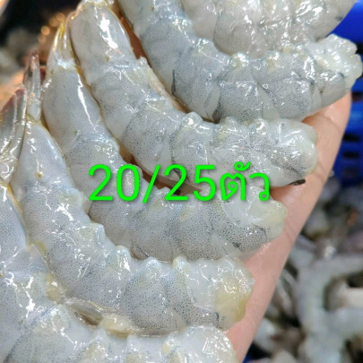 กุ้งขาว20.25ตัวโล.1 กิโลแกะเปลือกตัดหัวผาลังไว้หางแกะเสร็จจะเหลือ..05.;5ขีด