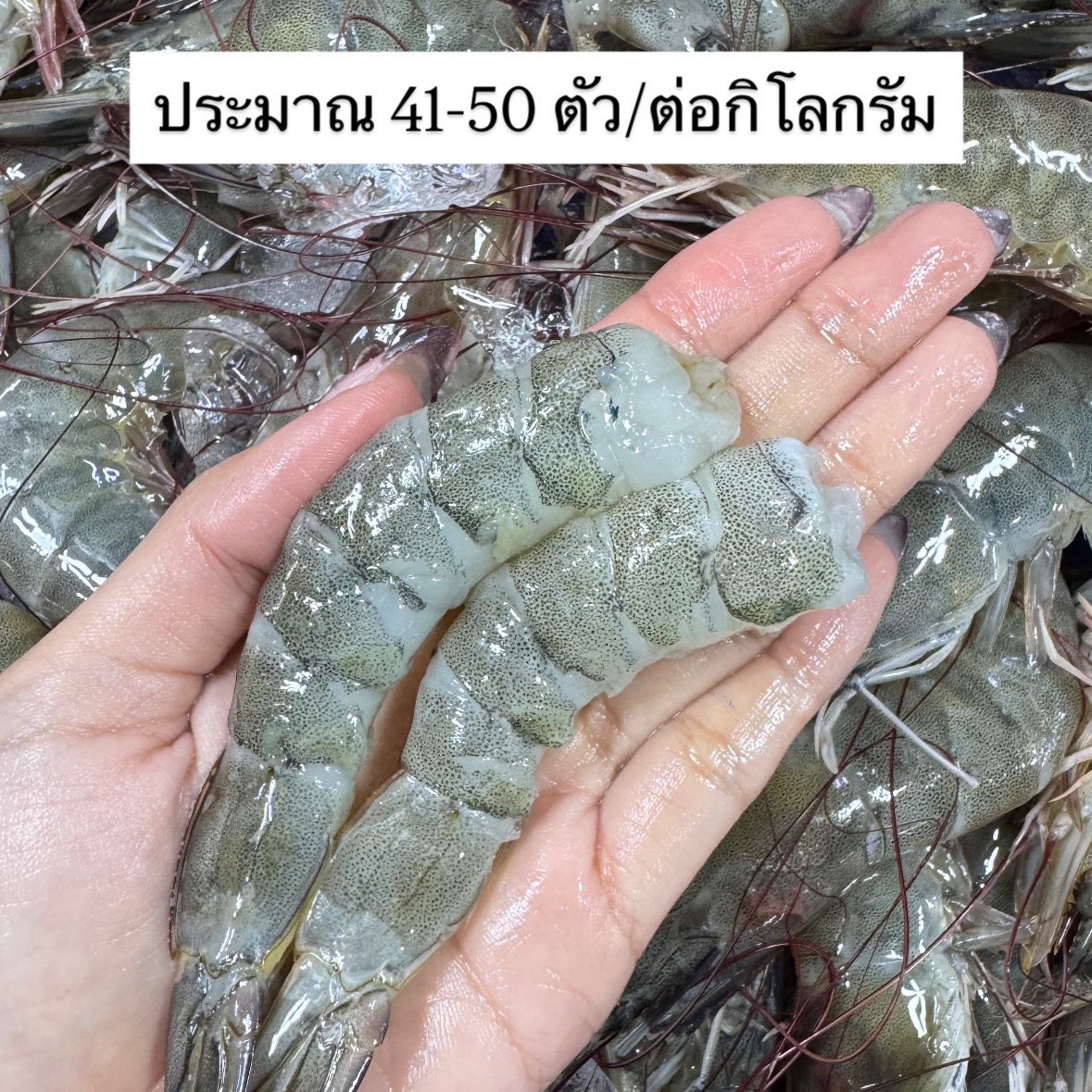• ขนาดกุ้ง : ประมาณ 41–50 ตัว/กิโลกรัม • น้ำหนักเนื้อกุ้งหลังแกะที่จะได้ประมาณ : 5กิโลกรัม • จำนวนกุ้งโดยประมาณ : 410 – 500ตัว • กุ้งสด เนื้อแน่น แกะเปลือกไว้เหลือหาง สะดวก