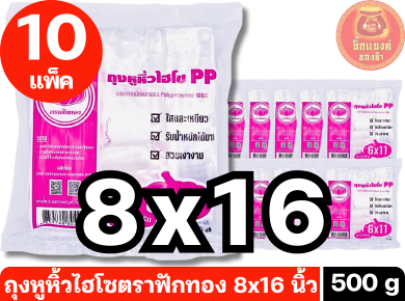 ถุงพลาสติกใสมีหูหิ้ว (ถุงไฮโซ) ขนาด 8x16 นิ้ว 500g. [1 แพ็ค บรรจุ 10 ห่อ]