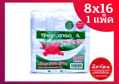 ถุงหูหิ้วพลาสติกเกรด A ตราช้างบิน ขนาด 8*16 นิ้ว น้ำหนัก 0.5 กก. จำนวน 1 แพ็ค