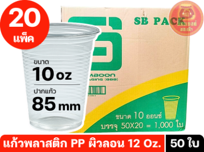 แก้วพลาสติกใส(PP) ผิวลอน ขนาด 10 ออนซ์ [1 ลัง บรรจุ 20 แพ็ค (1,000 ชิ้น)]