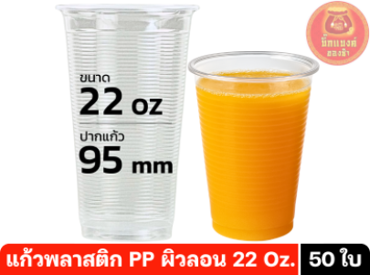 แก้วพลาสติกใส(PP) ผิวลอน ขนาด 22 ออนซ์ [1 แพ็ค บรรจุ 50 ชิ้น]