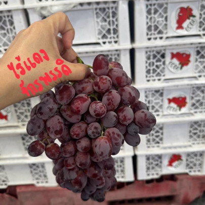 องุ่นแดงจักรพรรดิ ไร้เมล็ด น้ำหนักรวม 5กิโลครึ่ง รวมตระกร้า