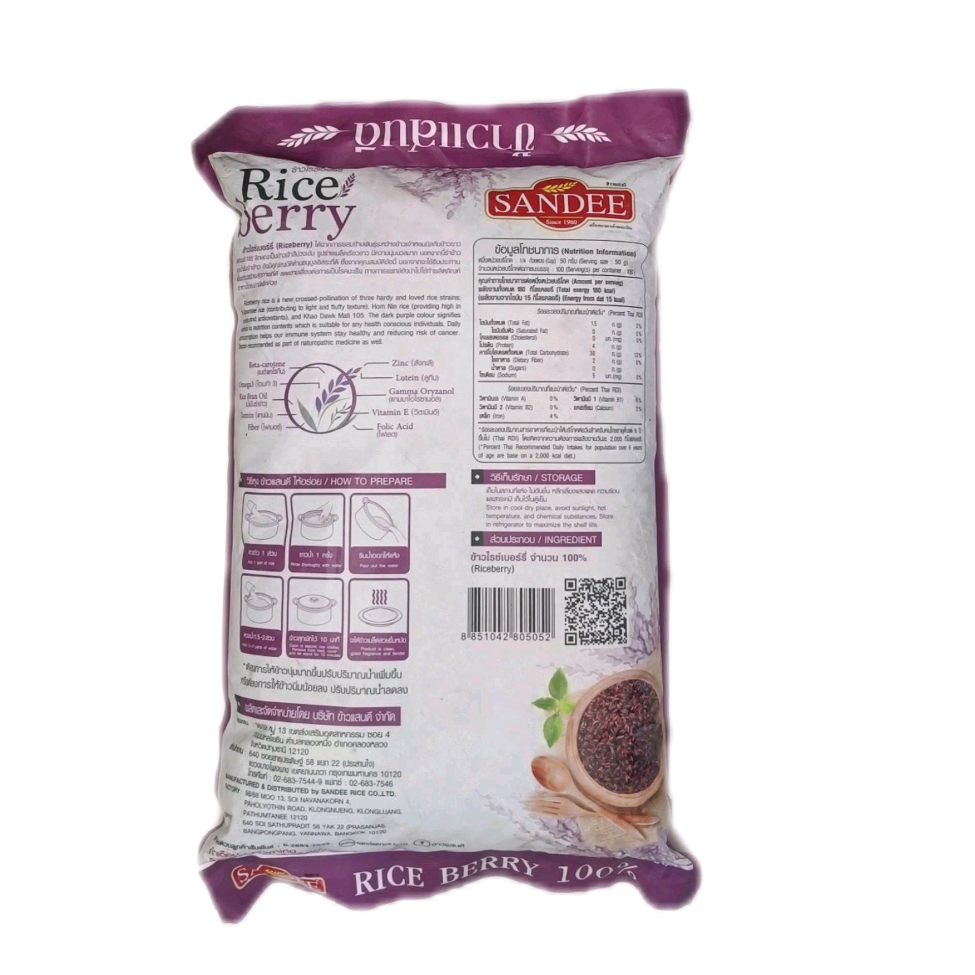 ข้าวไรซ์เบอร์รี่ ตราแสนดี 5กก. มีกากใย ประโยชน์สูง