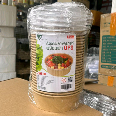 ถ้วยกระดาษคราฟท์ พร้อมฝา OPS ขนาด 500 ml. ตรา EASY LIFE บรรจุ 25 ชุด / แพ็ค