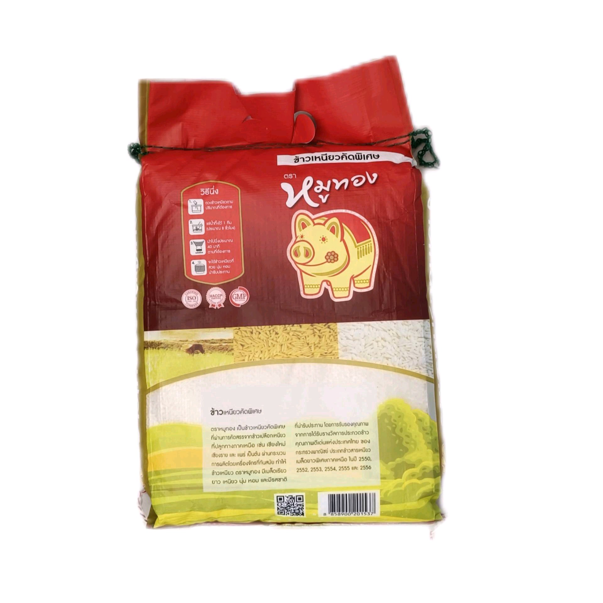 ข้าวเหนียวใหม่เอี่ยม ตราหมูทอง15กก. เหนียวใหม่เอี่ยมออ่อง นิ่มสุดๆ