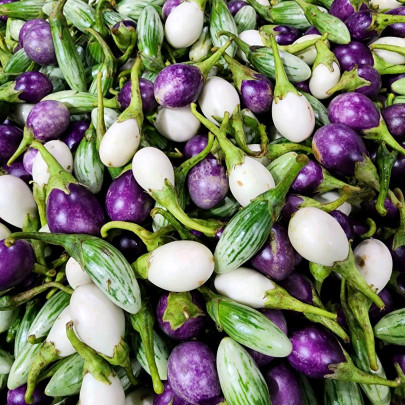 มะเขือ 3สี มะขือไข่เต่า มะเขือ ไข่เต่าม่วง มะเขือลายจำปี ผสมกัน
