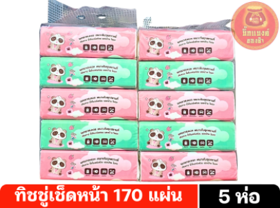 ทิชชู่เช็ดหน้า 170 แผ่น แพคละ 5 ห่อ