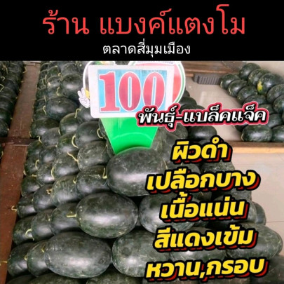 แตงโมแบล็คแจ็ค ผิวดำ เปลือกบางเนื้อแน่น สีแดงเข้ม หวาน กรอบ