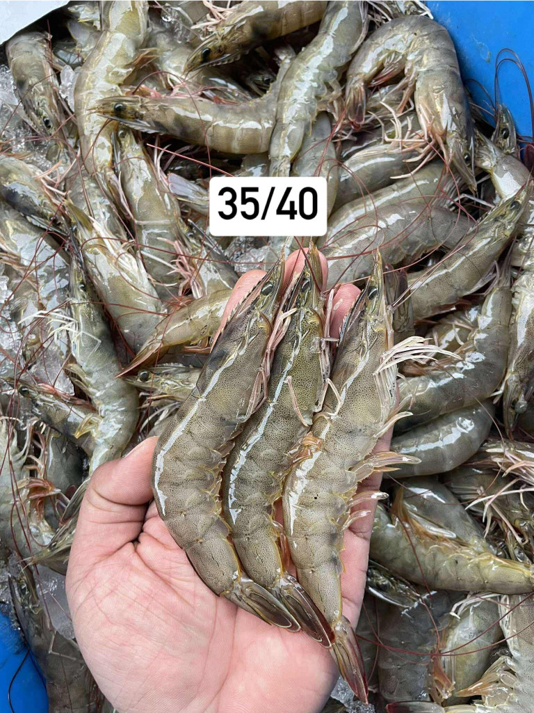 กุ้งขาว จำนวนประมาณ 35-40 ตัวต่อกิโลกรัม สด ทุกวัน