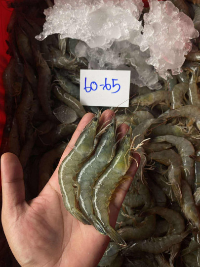 กุ้งขาว จำนวนประมาณ 60-65 ตัวต่อกิโลกรัม สด ทุกวัน