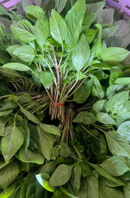 โหรพาเกรดพอใช้ ใบอาจเหลืองนิดหน่อย ช้ำๆ