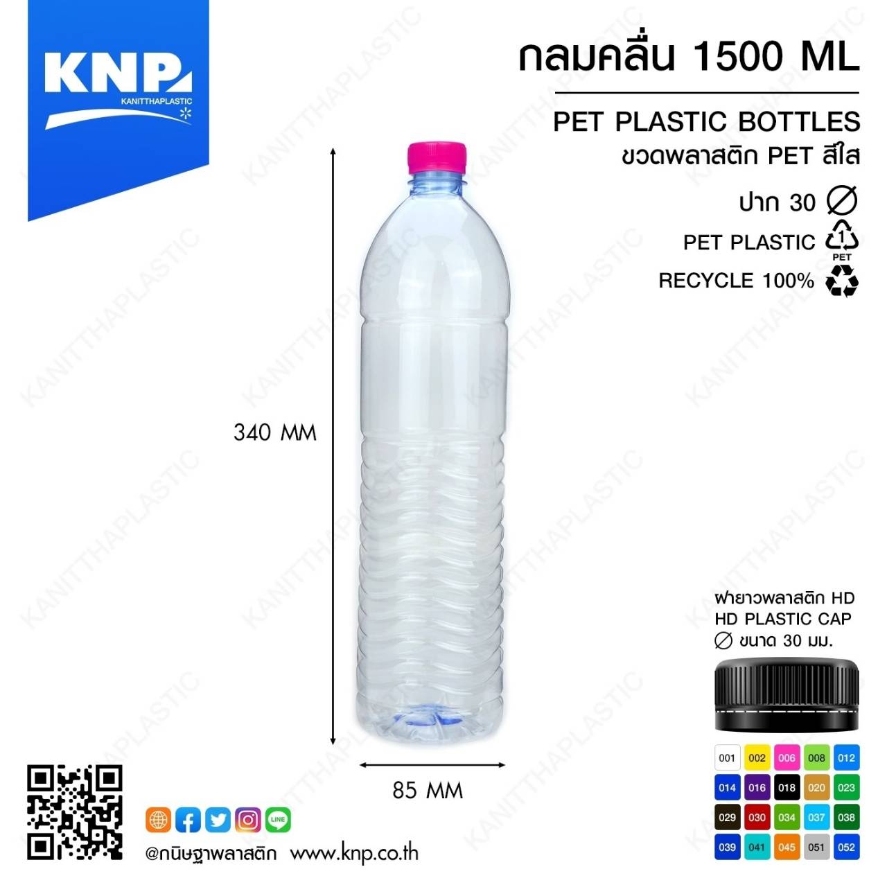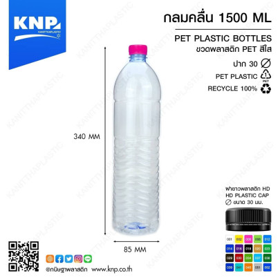 ขวด กลมคลื่น พร้อมฝา ขนาด 1,500 ml ปาก 30 / 1 แพ็ค บรรจุ 75 ขวด