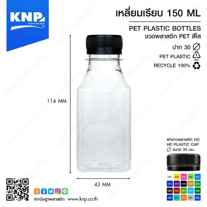 ขวด เหลี่ยมเรียบ พร้อมฝา ขนาด 150 ml ปาก 30 / 1 แพ็ค บรรจุ 150 ขวด