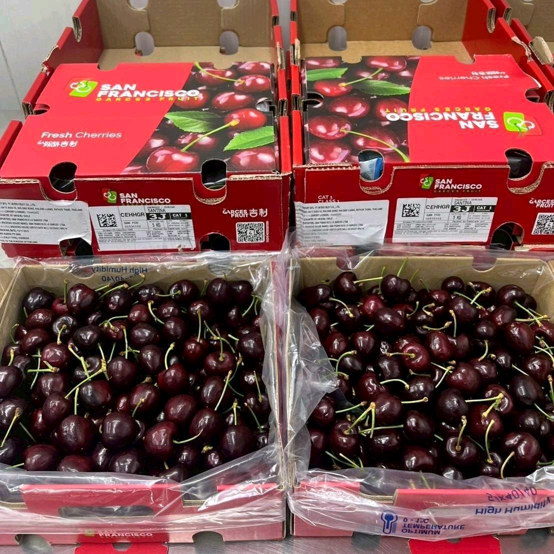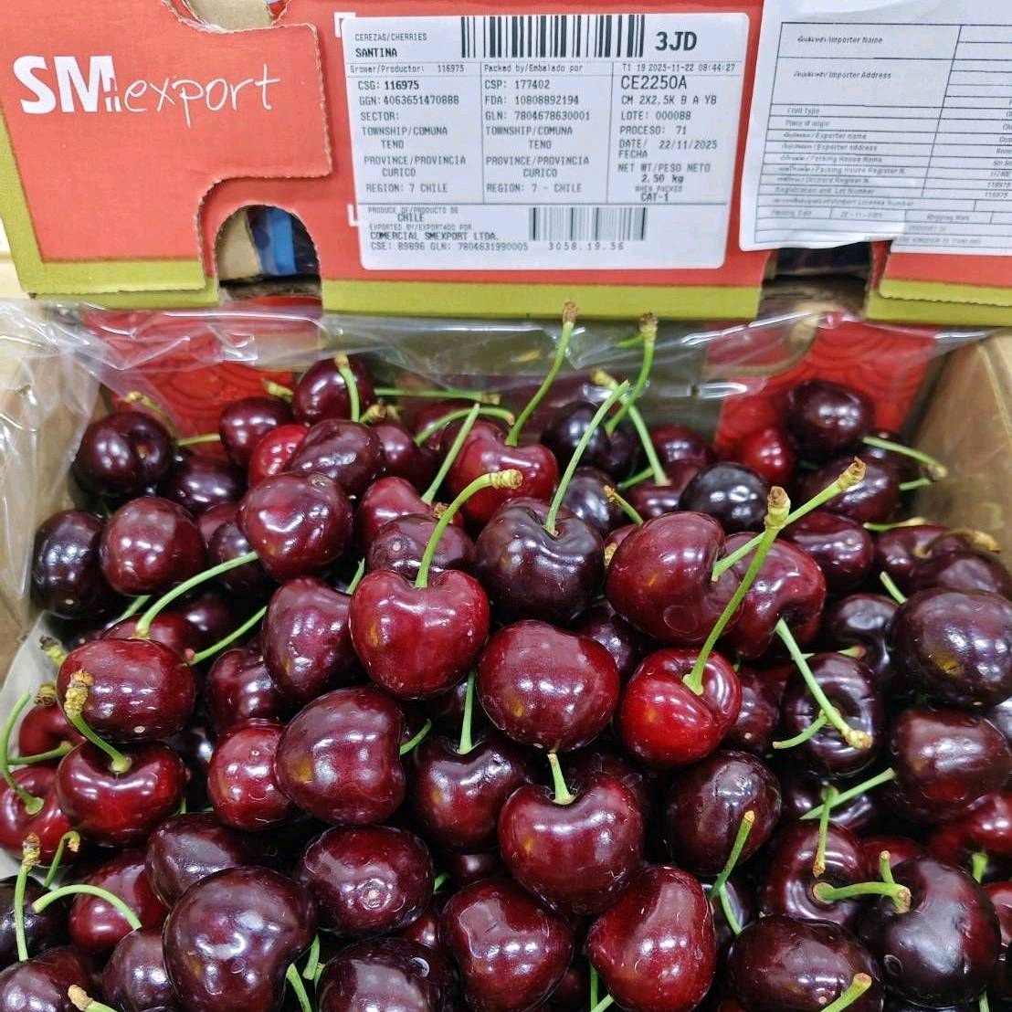 เชอรี่ ประเทศ ชิลี สาย พันธุ์ santina น้ำ หนัก 2.5 กิโลกรัม ขนาด ไซส์ 3j เนื้อ หวาน กรอบ ติด เปรี้ยว นิด หน่อย หวาน อร่อย ค่ะ
