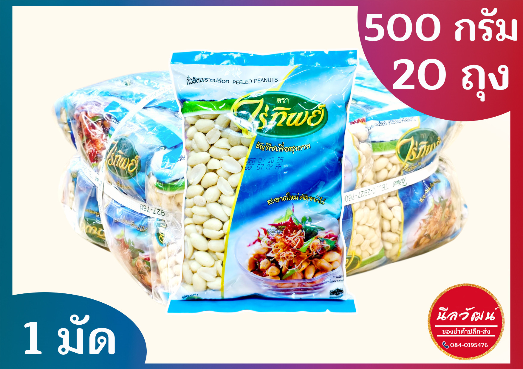 ถั่วลิสงเลาะเปลือก (ถั่วจีน) ตรา ไร่ทิพย์ ขนาด 500 กรัม จำนวน 1 มัด บรรจุ 20 ถุง