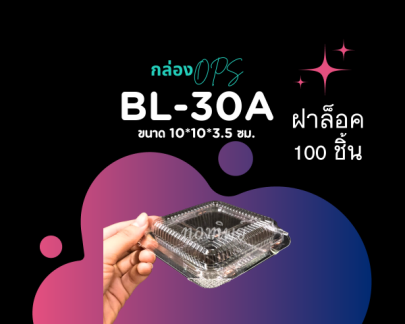 BL-30A ฝาล็อค จำนวน : 100 ชิ้น วัสดุ : OPS เหมาะสำหรับบรรจุอาหาร ใช้ครั้งเดียว อุณหภูมิใช้งานไม่้กิน 70 องศาเซลเซียส ข้อควรระวัง : ห้ามใช้กับเตาไมโครเวฟ ห้ามวางใกล้เปลวไฟ ห้ามบรรจุอาหารร้อนจัดที่พึ่งปรุงใหม่ ๆ